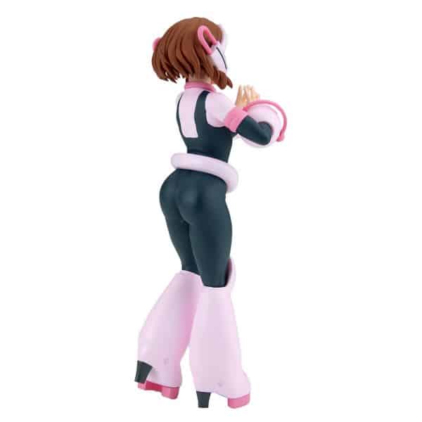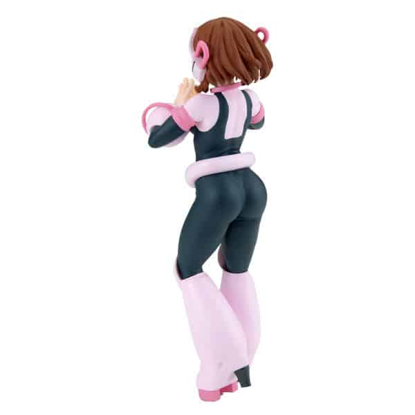 Uravity luce espectacular en esta línea enfocada en la estética y el detalle. Con 23 cm de altura, esta figura de Ochaco destaca por su traje de héroe con acabados brillantes y una pose que combina heroísmo y elegancia.